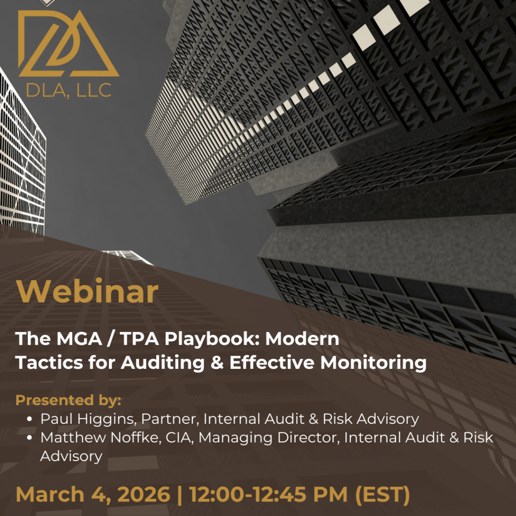 Unlock the hidden risks inside MGA and TPA relationships where delegated authority, outsourced processes, and fragmented oversight can quietly create some of the industry’s greatest exposure points. Join DLA as we break down the key risks facing MGAs and TPAs, and modern audit techniques every insurer should be using right now.